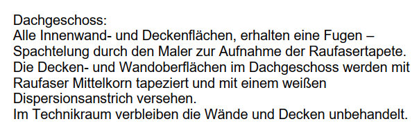 Spachtelung der Fugen bedeutet, dass dieses Oberfläche nur für grobe Rauhfasertapeten funktioniert. Feine Spachtelputze oder Anstriche sind nur bei besserer Spachtelung möglich. Dies kostet meist einen kräftigen Aufpreis, wird aber gerne verschwiegen, da es natürlich einiges an Konfliktpotential bei der späteren Abnahme birgt.